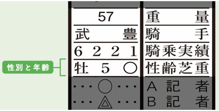 数字を囲む形は、馬が走った馬場状態を表している。