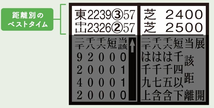 左から、競馬場名・タイム・着順。