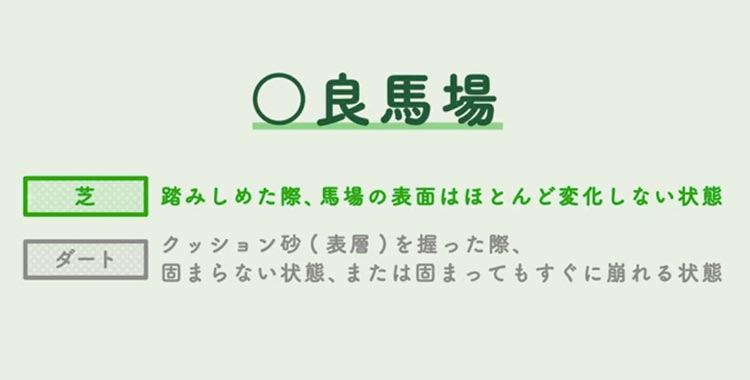 【馬場状態は、地面に含まれる「水分の量」によって4段階に分かれています】
